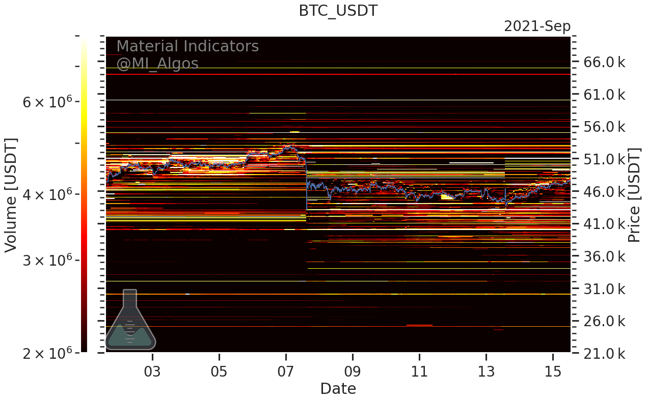 截至 9 月 15 日的 BTC/USD 买入/卖出水平(Binance)。资料来源:Material Indicators