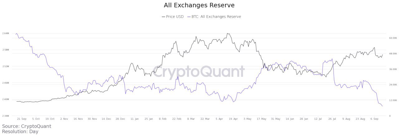 比特币交易所余额K线走势图。 资料来源:CryptoQuant