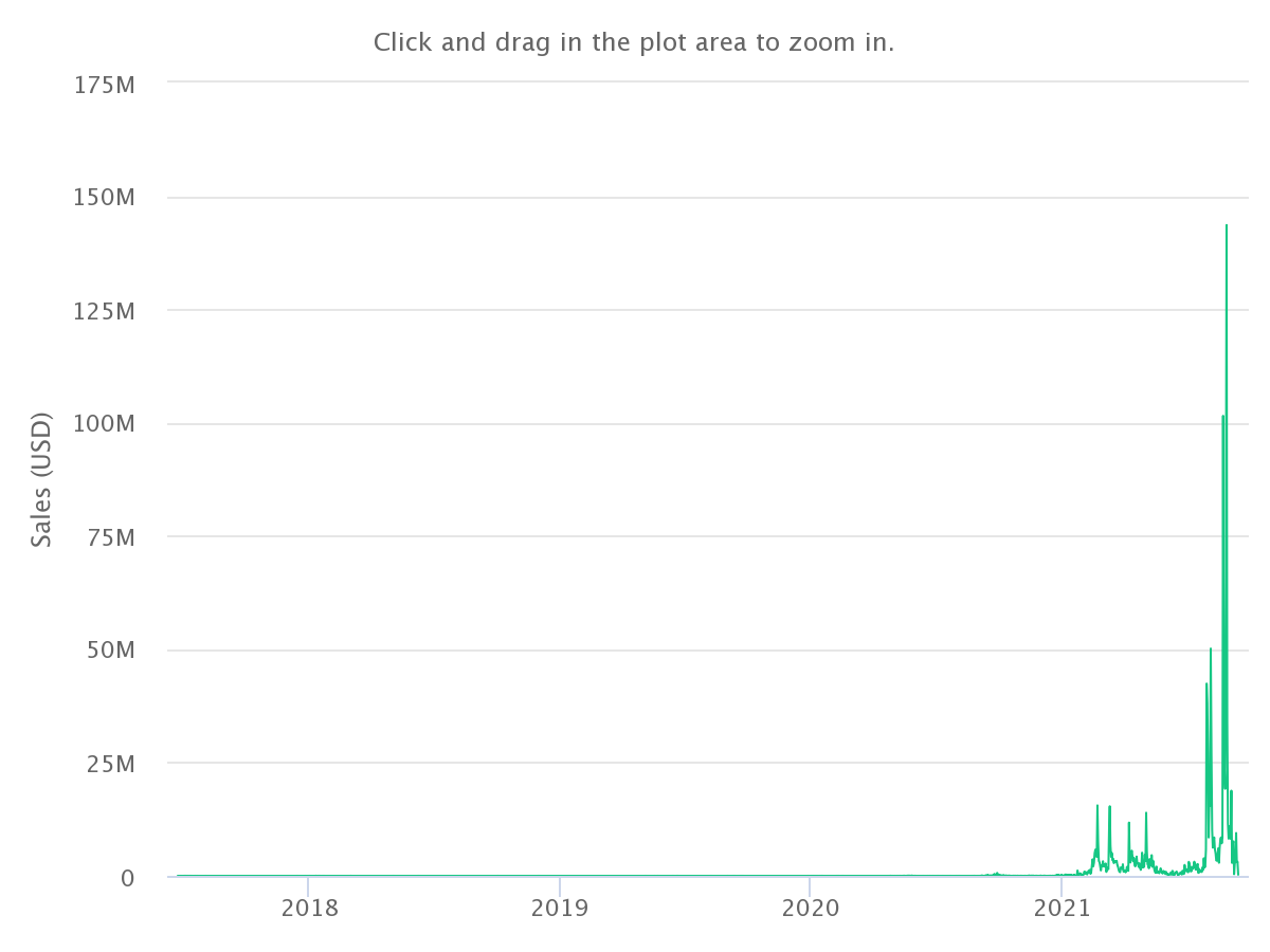 CryptoPunks 历史上的交易量。 来源:CryptoSlam