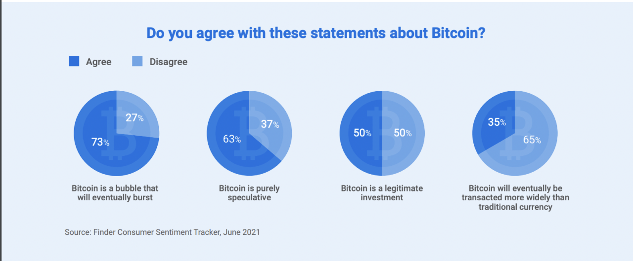 话虽如此,澳大利亚 Kraken 交易所董事总经理乔纳森·米勒 (Jonathon Miller) 表示,他的平台在 5 月份的 YouGov 市场研究中得出了与 Finder 相似的数据。