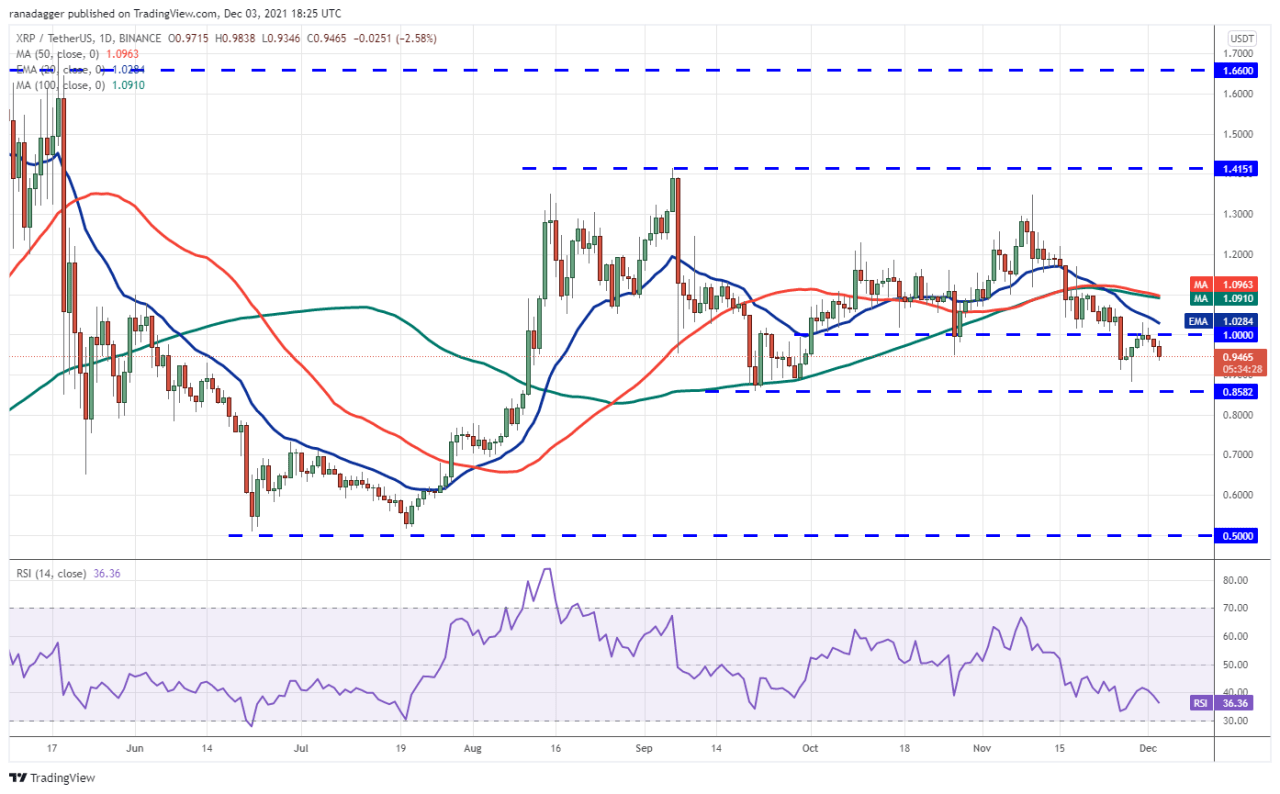 向下倾斜的 20 天 EMA(1.02 美元)和低于 37 的 RSI 表明卖家处于控制之中。 如果空头下跌并将价格维持在 0.85 美元以下,则 XRP/USDT 对可能会暴跌至 0.70 美元的下一个支撑位。