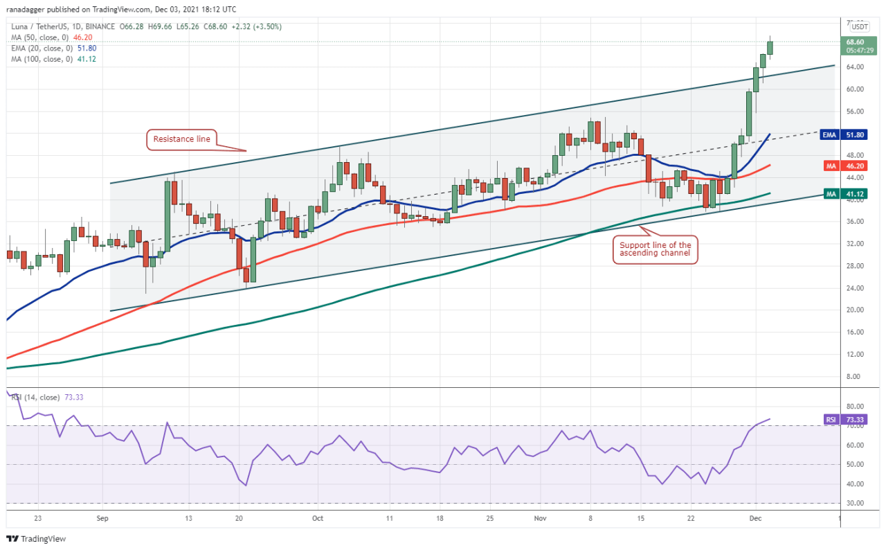 Terra 的 LUNA 代币在 11 月 28 日突破移动平均线并获得动力。 多头的强劲买盘推动价格在 11 月 30 日创下历史新高,表明上涨趋势恢复。