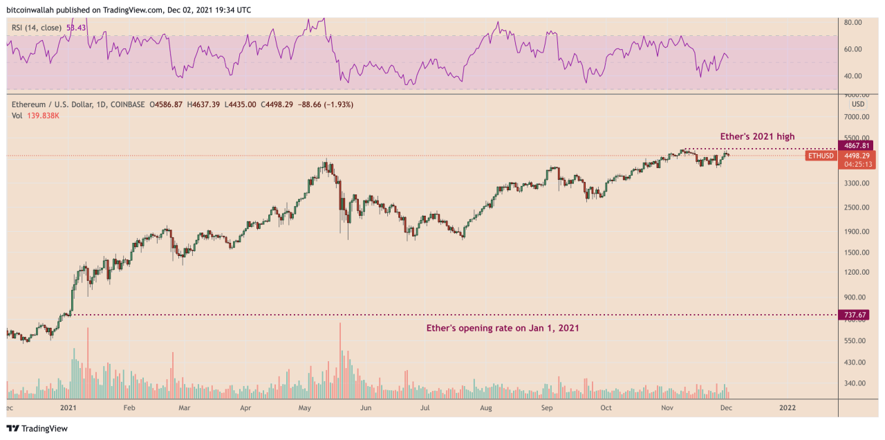 ETH/USD 每日价格K线走势图。 资料来源:TradingView